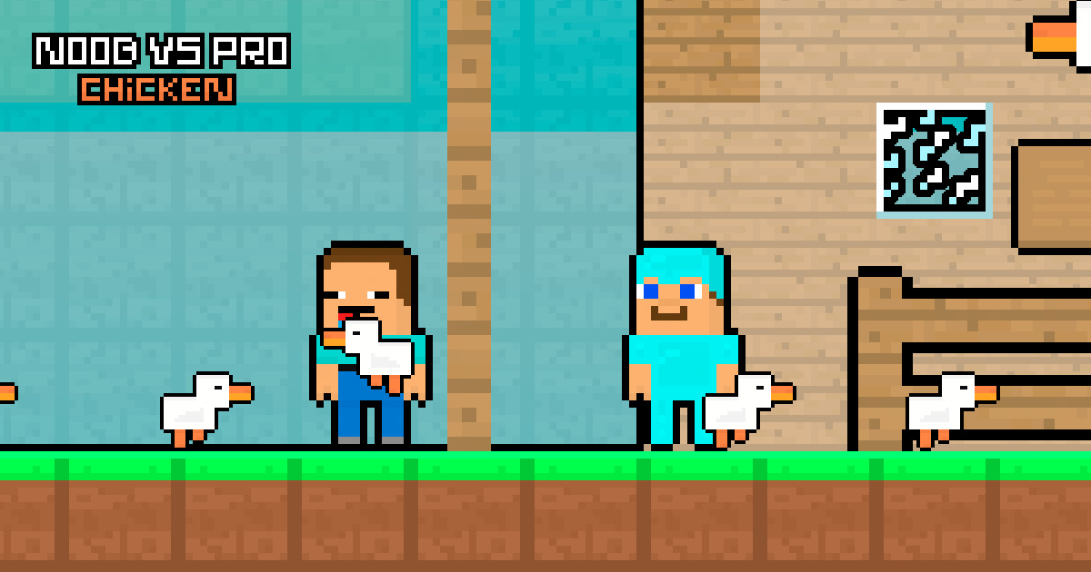 Are you ready to compete with your friend in this adventure? One of you will be a NOOB, and the other will be a PRO. The player who collects the fastest chickens will win. To win this fun competition, you need to collect all the chickens before your friend does. Gather the chickens and bring them to the coop to win. The player who collects the fastest chickens wins the game. Be careful, the chickens are very fast and may escape, so catching them will be a bit challenging. Play with your friend and win this fun competition.